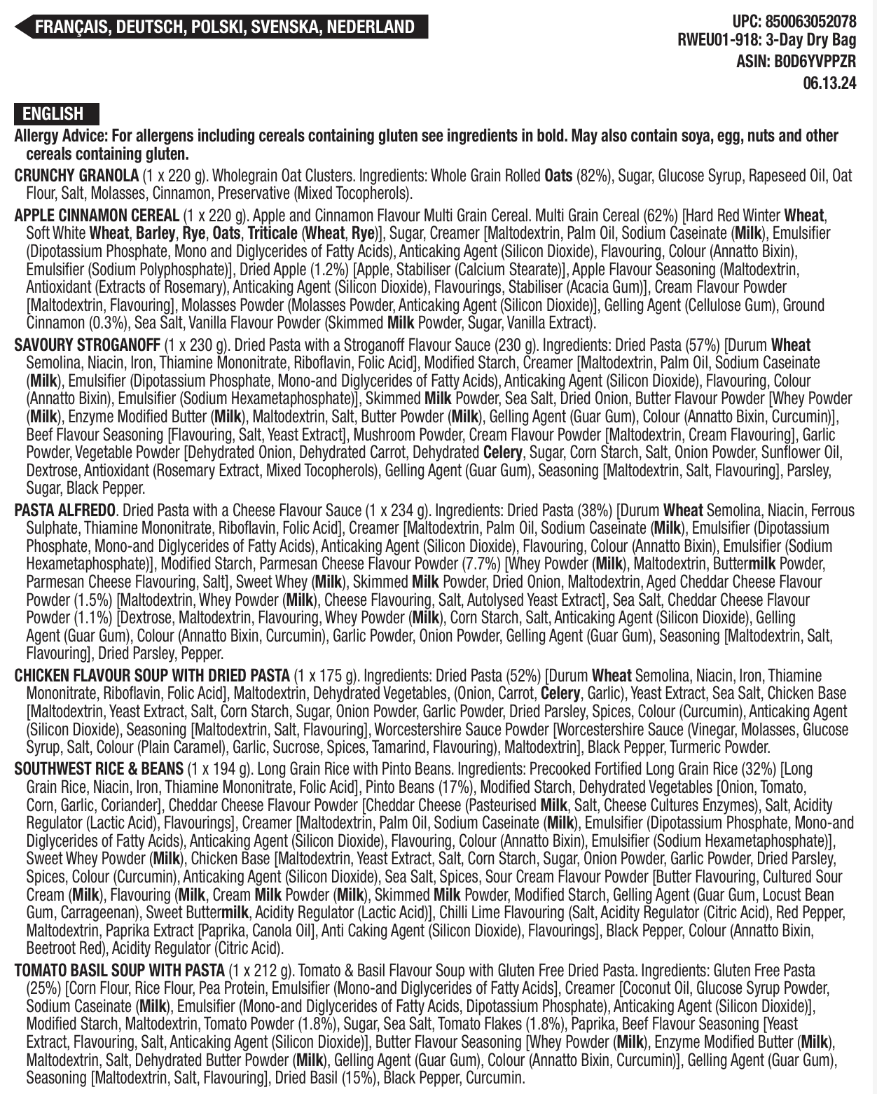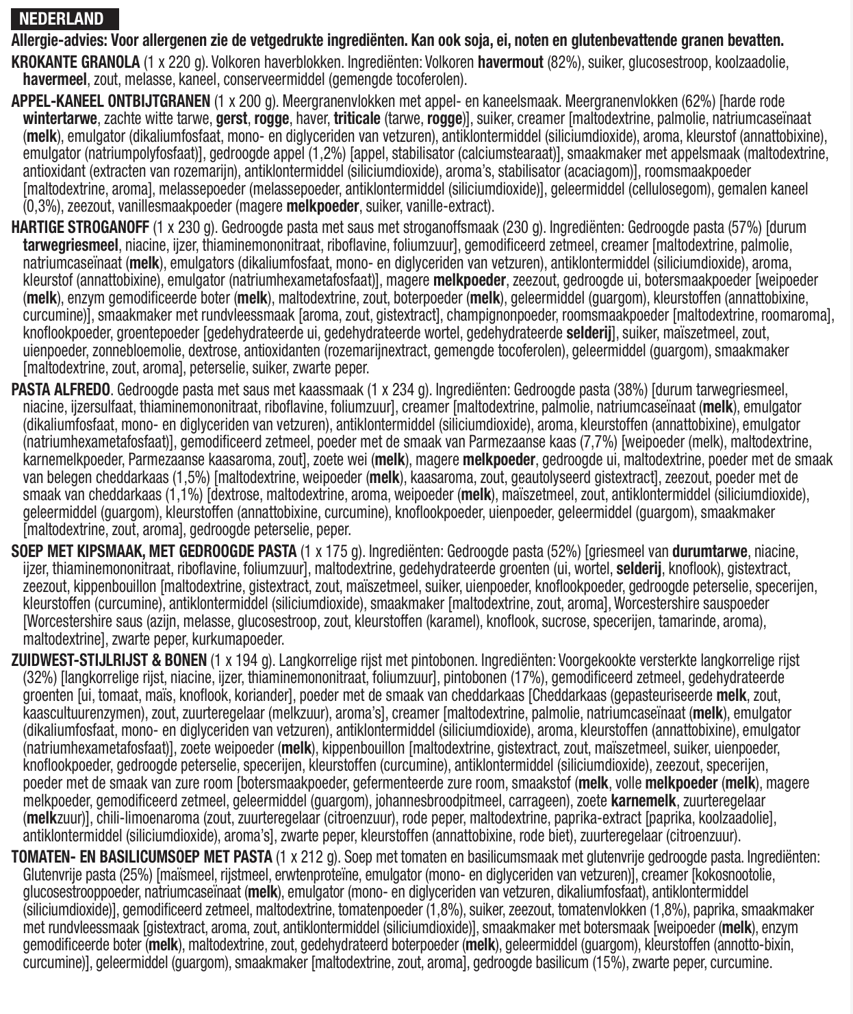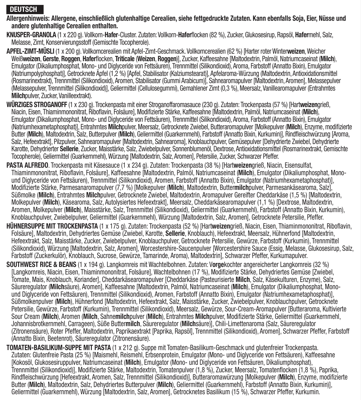 28 porzioni di colazione e antipasti liofilizzati, DryBag, fino a 25 anni
