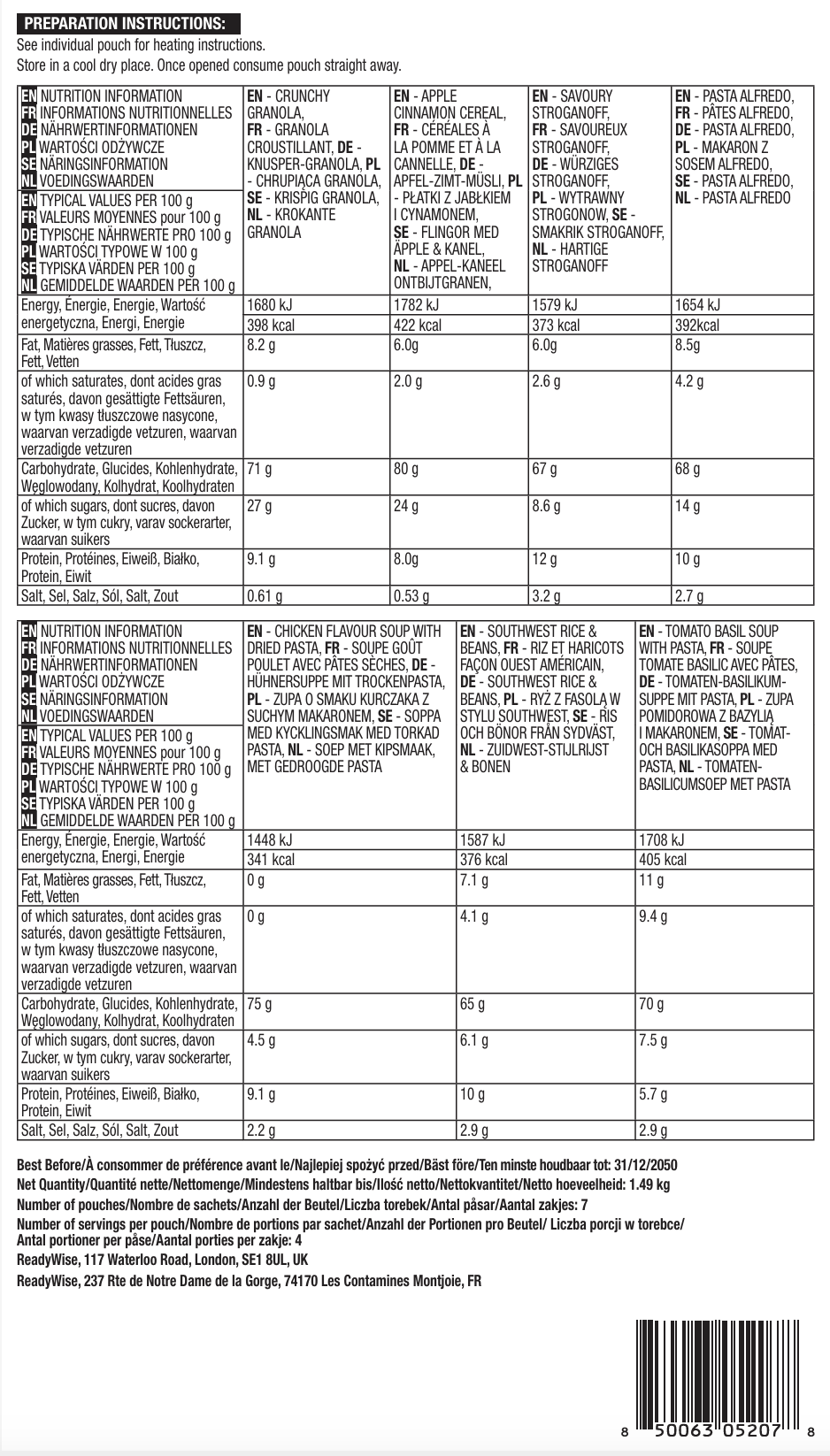 - VARIETY SURVIVAL PACK: ricevi una selezione di 7 pasti disidratati unici e gustosi pronti in ogni borsa.