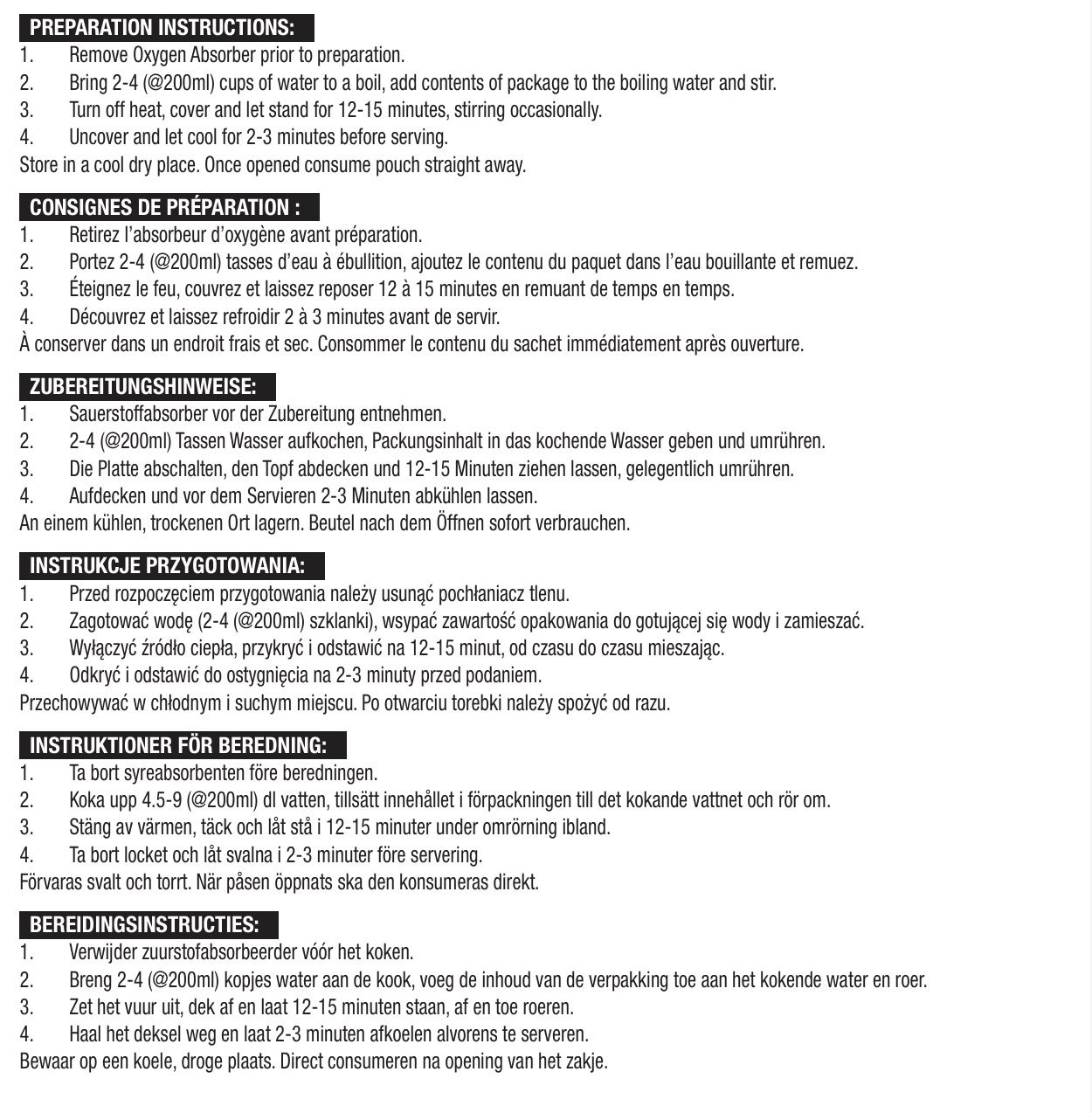 - Per evitare sprechi, ogni busta contiene comodamente 4 porzioni