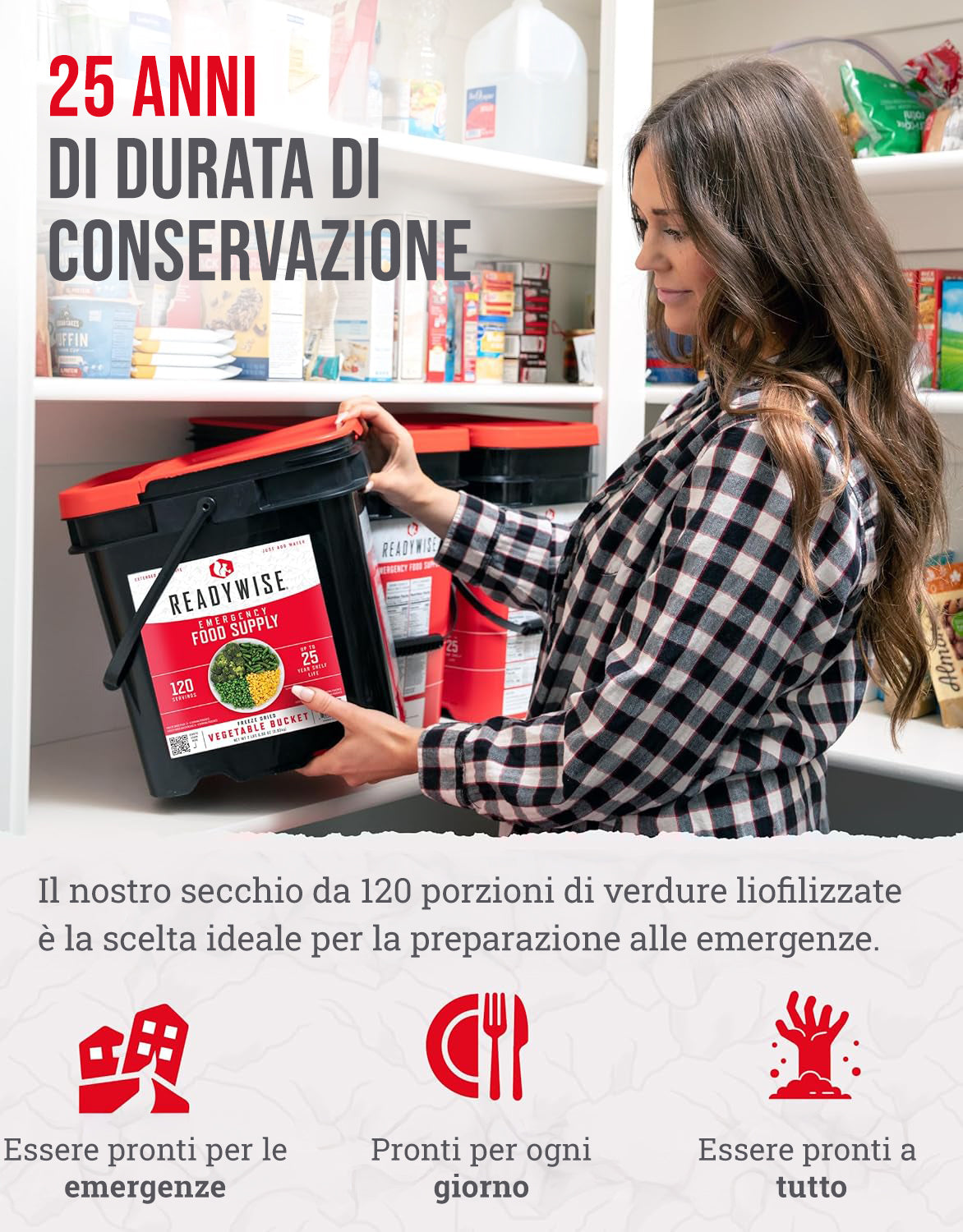 Secchio da 120 porzioni di verdure liofilizzate, fino a 25 anni